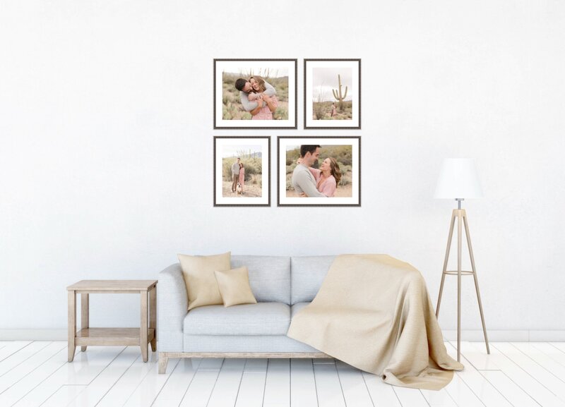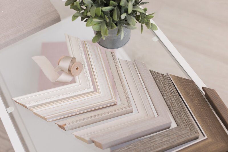 Our frames are hand-crafted and selected to fit the aesthetic to match your style. Choose from a single statement piece or a wall gallery that can be complete for each session or one that is designed to grow over time with your annual family portrait, the addition of a new family member, or any new milestone in your lives.